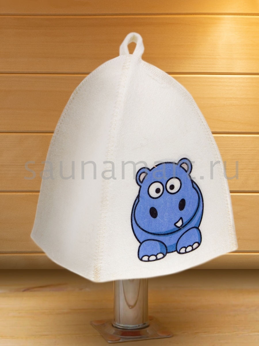 Шапка это необходимый атрибут для похода в баню или сауну – как для взрослых, так и для детей. Высокая температура и сухой воздух в парной могут вызвать перегрев и ожоги кожи головы. Шапка для бани убережет голову, уши и волосы от высокой температуры и перегрева. Если пренебрегать защитой головы с помощью шапочки, то волосы теряют влагу и становятся ломкими и сухими. Помимо термоизоляционных свойств банная шапка обладает отличными гигроскопичными свойствами - прекрасно впитывает влагу и пот, что сделает Ваше пребывание в парной более комфортным. Головной убор для бани выполнен из натурального материала – войлок. Материал достаточно пористый, за счет чего создает своеобразный защитный барьер по принципу термоса, для изоляции от высокой температуры. Яркий рисунок бегемотика обязательно придется по вкусу ребенку. После применения расправьте шапку и просушите. Мы предлагаем Вам не только эффективное средство защиты от перегрева, но и стильный яркий аксессуар для бани и сауны.