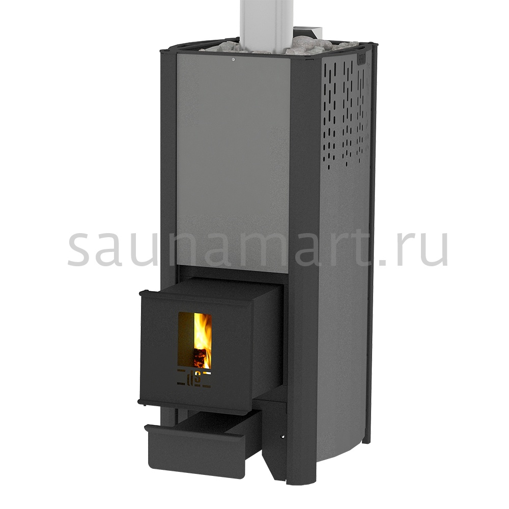 Несущие стенки топки с рёбрами жесткости и открытая вентилируемая каменка создана из котловой углеродистой стали, покрытой жаростойкой эмалью Certa,