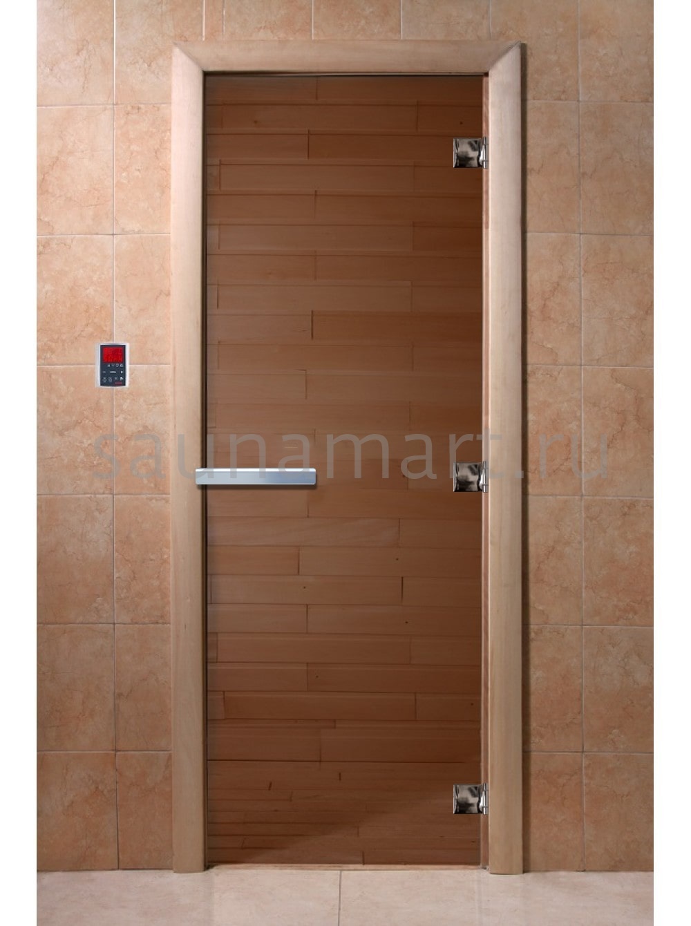 Дверь для сауны 1900х700 Бронза 8 мм 3 петли ольха