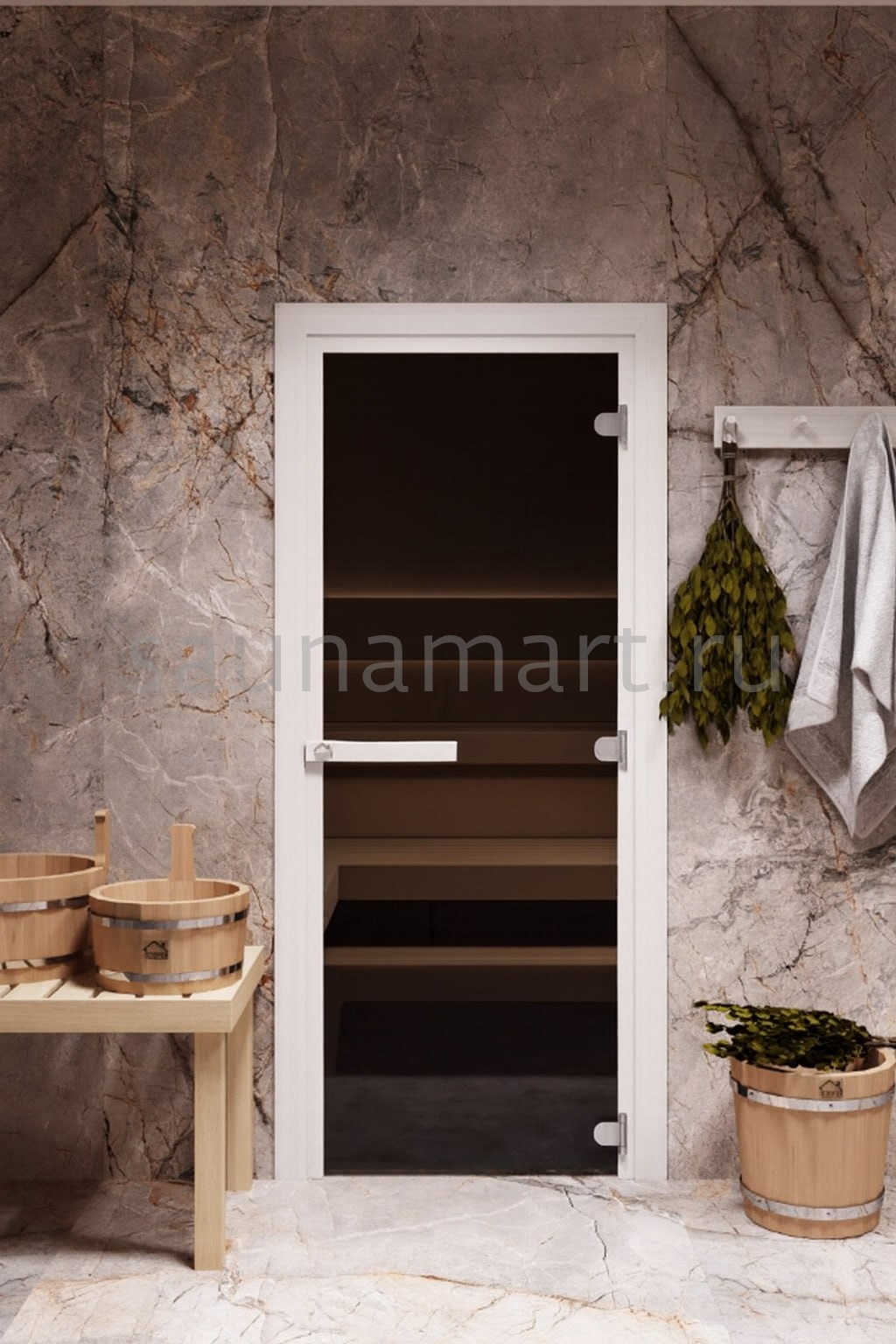 Дверь из закаленного стекла великолепно вписывается в парную любой бани и сауны.