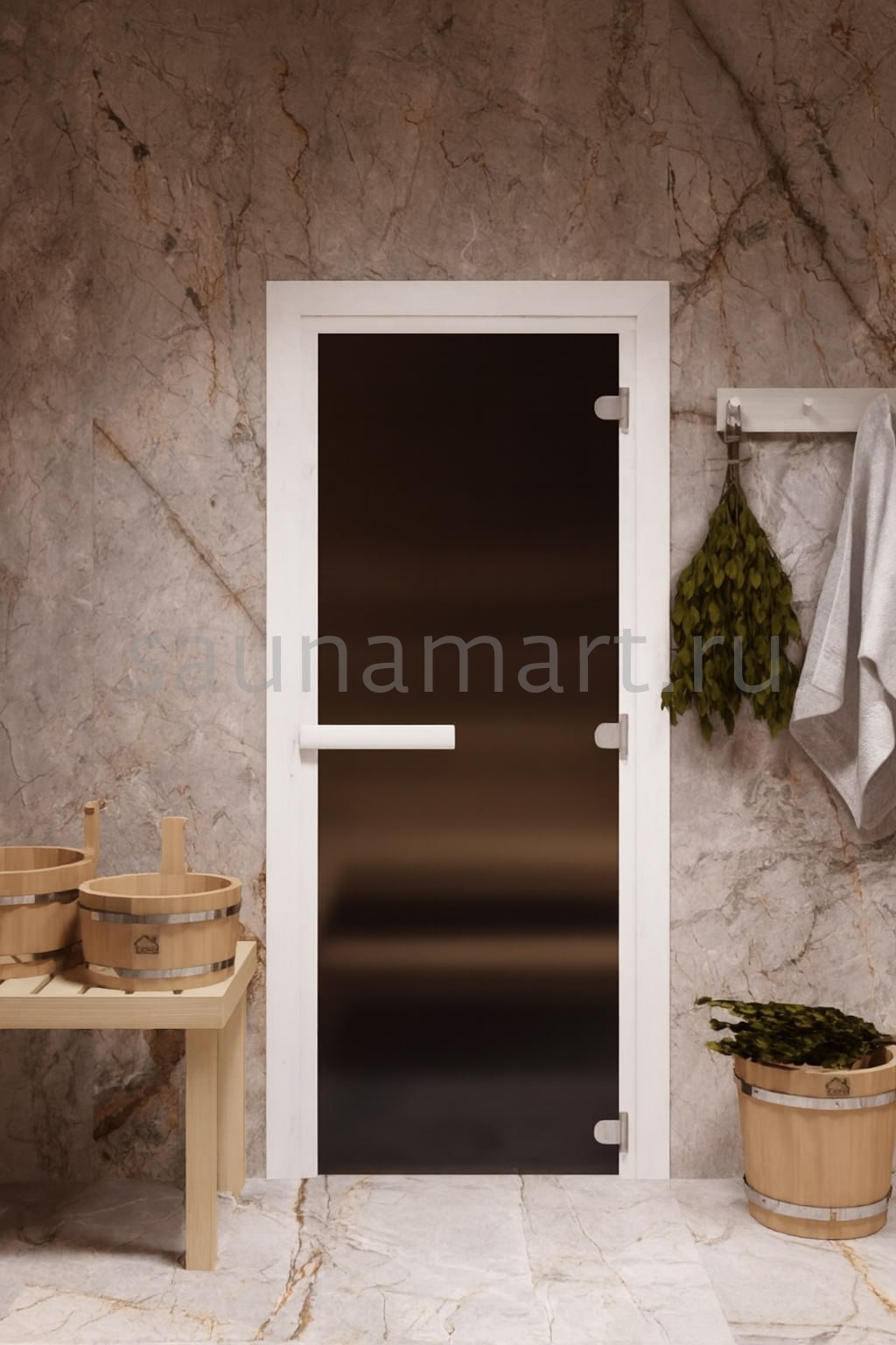 Дверь для сауны 1900х700 Бронза матовая 8мм 3 петли осина