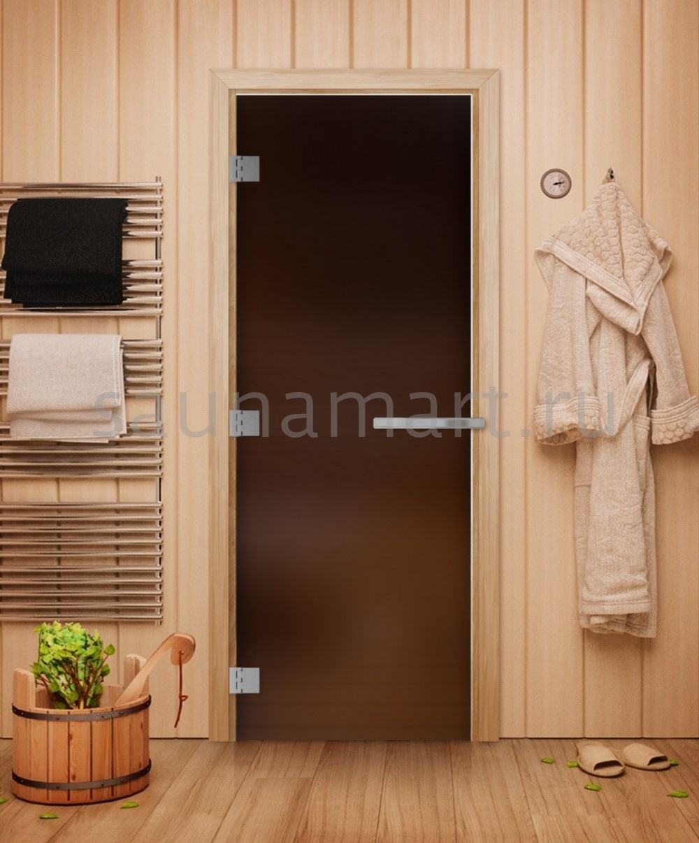 Премиальная дверь с матовым бронзовым стеклом для элитных саун и бань. Сочетает в себе изысканный дизайн и профессиональные технические характеристики, обеспечивая идеальное решение для требовательных покупателей.