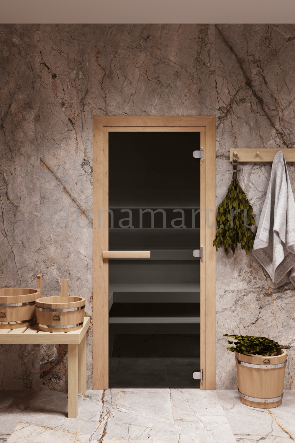 Дверь для сауны 1900х700 Графит 8мм 3 петли ольха