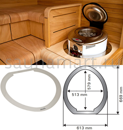Фланец монтажный Harvia HAF1 — специальный защитный элемент для встраивания печи Forte в полок. Предотвращает перегрев деревянных конструкций и обеспечивает эстетичный монтаж.