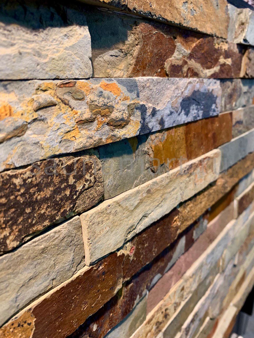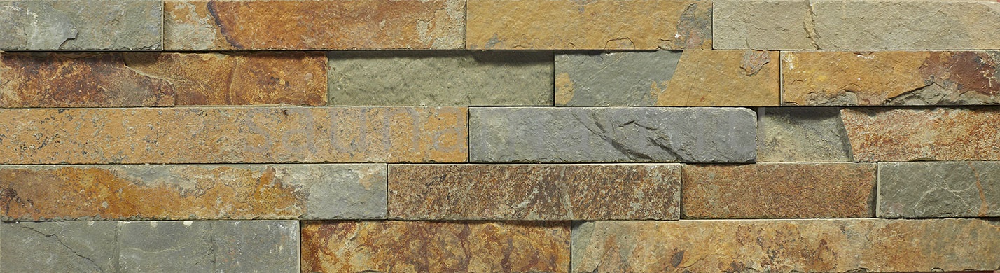 Камень натуральный Сланец Мультиколор плитка 600?150 мм — уникальный облицовочный материал с разноцветной палитрой природных оттенков. Удлинённый формат 600?150 мм создаёт эффект монументальной кладки, а вариативная толщина 10-20 мм позволяет выбрать оптимальное решение для разных задач (0.63 м? в упаковке).