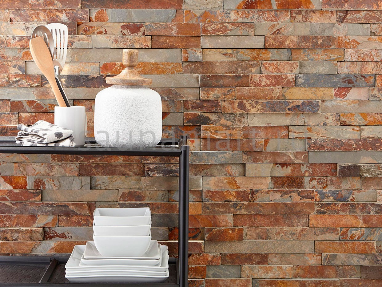 Мультиколорная гамма сочетает теплые и холодные тона в естественных природных комбинациях. Натуральный сланец обладает слоистой структурой, устойчив к влаге и перепадам температур. Идеален для создания акцентных стен в современных интерьерах и эффектных фасадных решений.