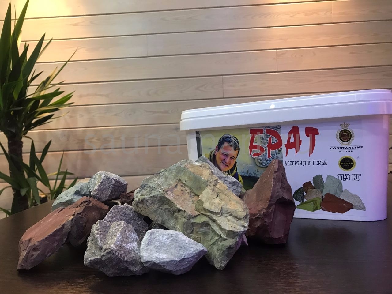БРАТ Ассорти для семьи участвуя в генерации пара, горячие габброиды и метабазальты способствуют релаксации организма, укрепляют иммунную систему. Красная яшма облегчает лихорадку, эпилепсию, салатовая яшма средство от бессонницы, ночных кошмаров.