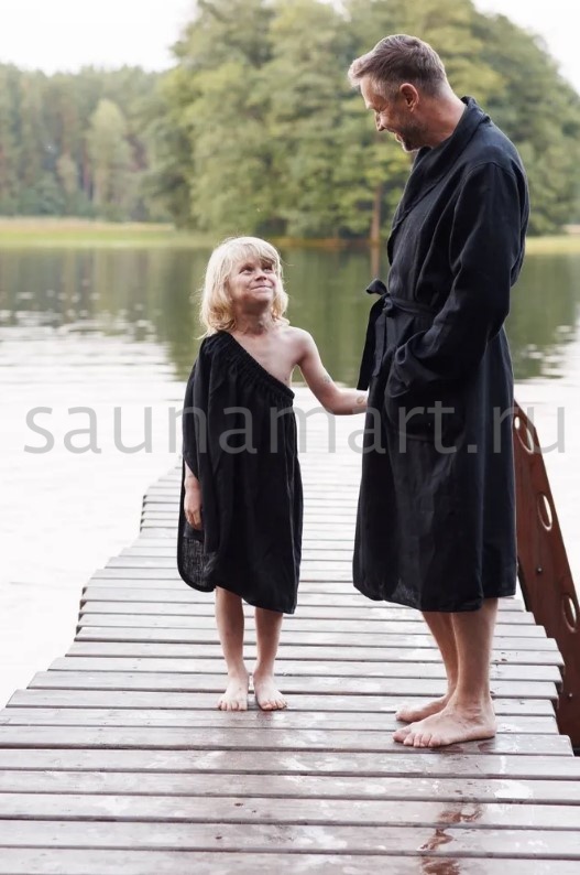 Отзывы к Набор для бани (халат. размер 50-52 + шапка) коллекция Уголь. цвет чёрный. лён 100% +ДОБАВЬТЕ СВОЙ ОТЗЫВ