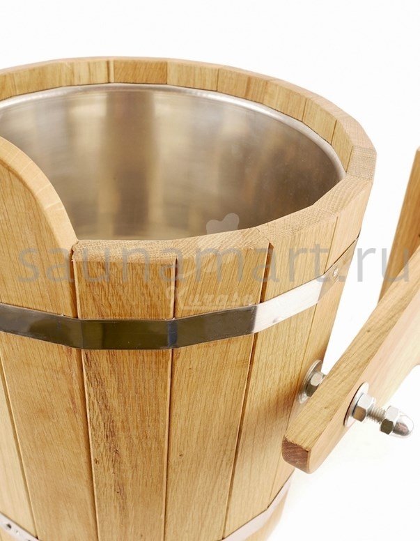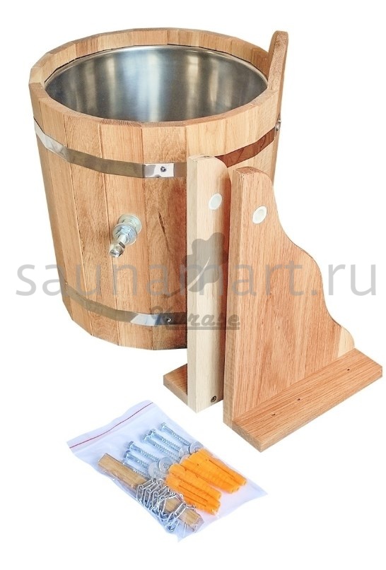Обливное устройство для бани и сауны. Объем 20 литров. Материал изготовления - древесина дуба. Внутренняя вставка из нержавеющей стали предотвращает появление грибка и ржавчины.
