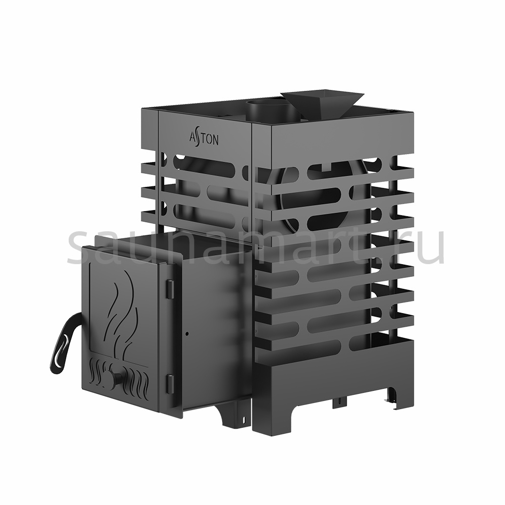 Преимущество печей ASTON: Конструкция разработана для максимальной тепловой эффективности при минимальном расходе ресурсов - времени и топлива. Каменка и корпус имеют скошенные поверхности, что обеспечивает свободное движение дымовых газов без образования "дымовых карманов". Такая геометрия позволяет всем частям печи прогреваться равномерно как по температуре, так и по времени, обеспечивая полное сгорание топлива и быстрый результат.