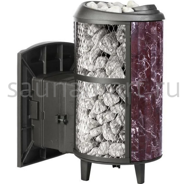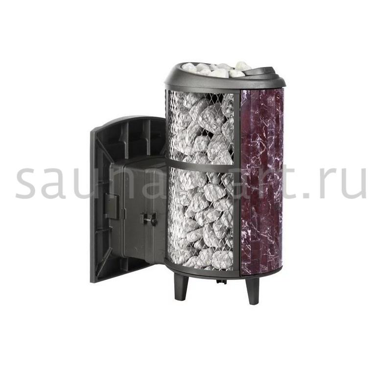 Модель с комбинированной облицовкой из нержавеющей сетки и ламелей. Особенность модели - открывающаяся дверь с ламелями. Это оригинальное решение обеспечивает быстрый прогрев парной.