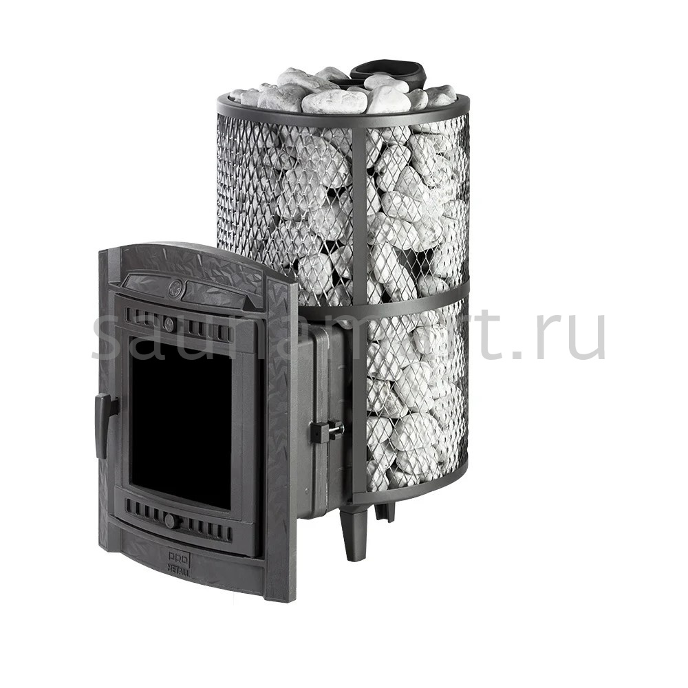 Модель с увеличенной каменкой и повышенной производительностью. Кожух печи выполнен в виде сетки из нержавеющей стали и полностью заполняется природными камнями, что обеспечивает высокую динамику нагрева парильного помещения.