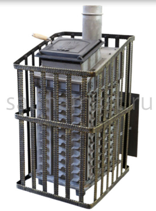 Печка Гефест Ураган может быть модернизирована до полноценной печи для русской парной. Для этого кованная сетка заменяется на каменную облицовку без необходимости разборки отопителя.