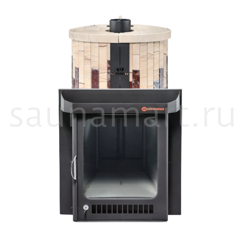 Печи V?HRINGER с дровяной каменкой, у которой вся топка окружена большой массой камней, сильно разогревается, а дров уходит немного, благодаря полному сжиганию дымовых газов с помощью бокового и верхнего горения. Использование эффекта «Vortex», позволяет извлечь всю энергию и направить её на нагрев большого количества камней.