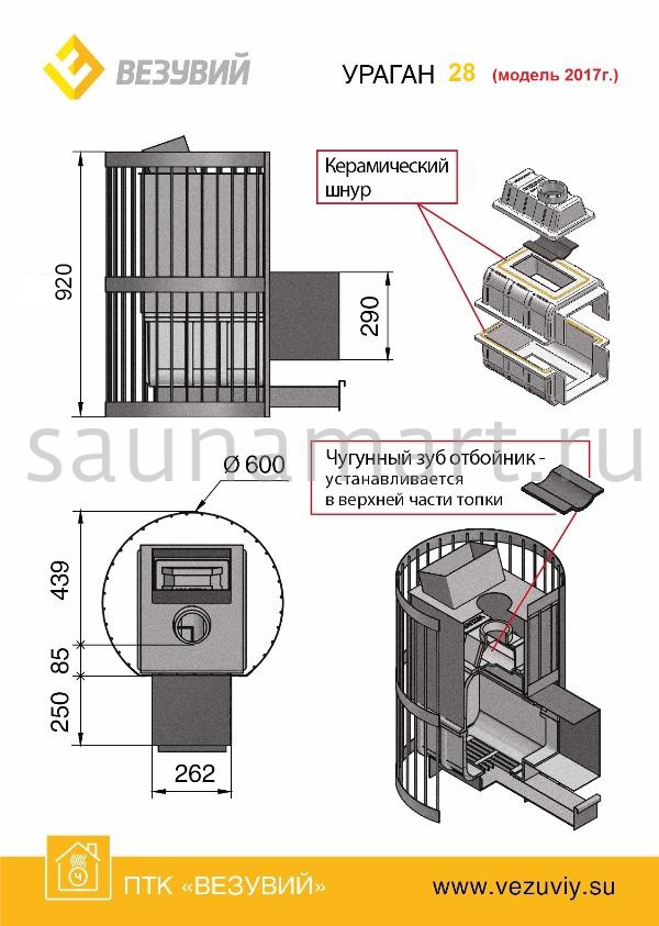 - Материал закрытой каменки: особо прочная котловая сталь (09Г2С)