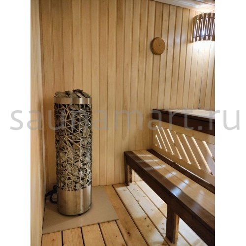 Комплектация: выносной электронный пульт управления с 5-метровым кабелем. ТЭНы изготовлены из нержавеющей стали AISI 304. Размещение: напольное на негорючее основание. Каменка закрытого типа с верхней загрузкой. Парообразование: ручное через дверцу. Оснащена защитой от перегрева и системой аварийного отключения.