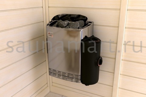 Небольшие габариты и приемлемая цена делают печь для сауны Sawo Scandia SCA-90NB-Z одной из приоритетных моделей для парилок объёмом 8-14 куб.метров. В конструкции каменки используется сразу два металла. Это инженерное решение обеспечивает бесперебойную работу печи в агрессивных условиях высокой температуры и влажности сауны. Внешняя часть и каркас электрокаменки произведены из нержавеющей стали. Внутри печь усилена оцинковкой. Максимальная вместимость камней у Scandia SCA-90NB-Z составляет 22 кг. Такое количество камня не только быстро прогревает воздух, но и даёт возможность наслаждаться большим количеством легчайшего пара. Температура и таймер работы электрокаменки регулируются при помощи удобной встроенной панели управления. Ручки термостата сделаны из термостойкого материала. Они абсолютно безопасны, так как не оплавляются и не выделяют токсичных веществ во время использования печи.