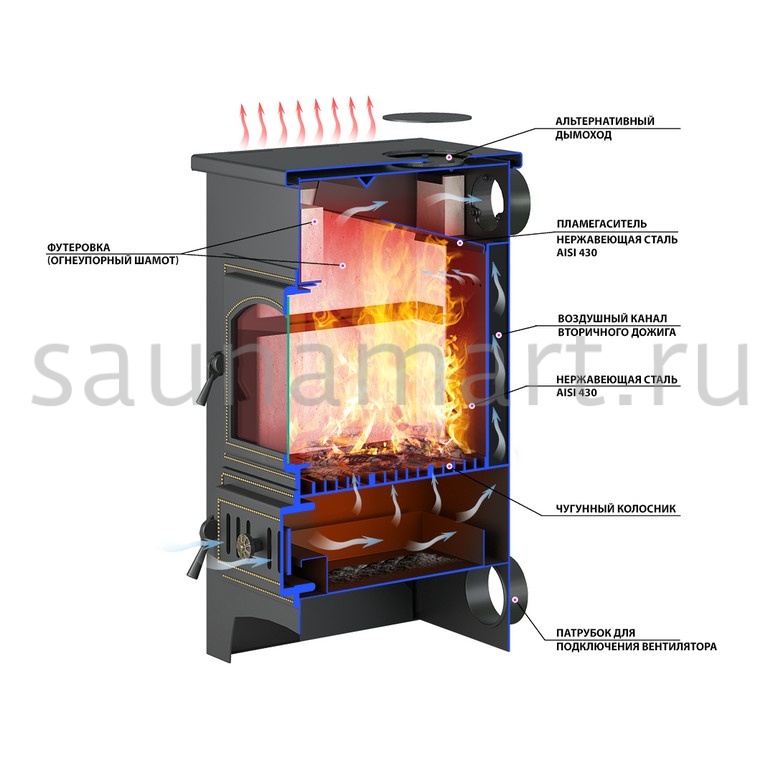 - Материал дверки: жаростойкий чугун (ГОСТ 1412-85)