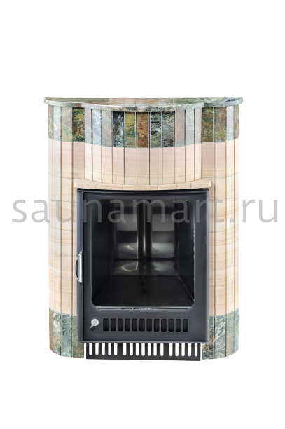 Для печи «Малютка» серии ПФ производитель V?hringer выпускает порталы из натурального мрамора, змеевика и жадеита. Облицовочные материалы поступают на завод в слэбах, заготовки разрезают на пластины, которые затем навешивают на печь.