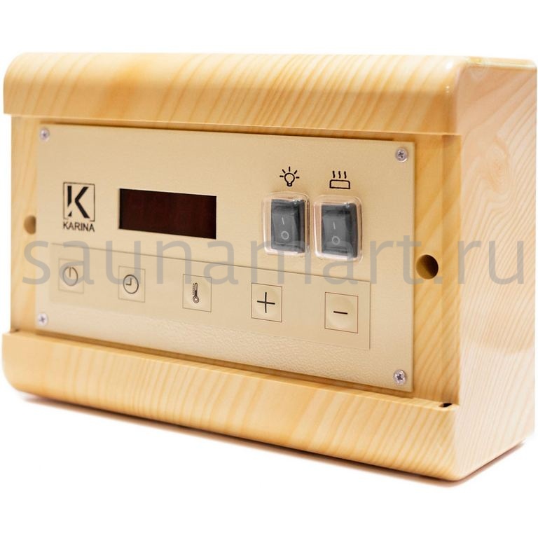 Пульт управления Karina Case C18 Wood Ca-18kW-Wd используется для автоматического управления электрокаменкой. Данный прибор рассчитан для электрокаменок, мощность которых не превышает 18 кВт. Монтаж может осуществляться снаружи парильного помещения.