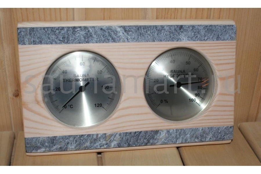 Термогигрометр 282-THRA от компании Sawo имеет классическую прямоугольную форму. Это надежный, практичный и долговечный прибор. Корпус термогигрометра выполнен из осины, очень прочного материала, который не выделяет смолу и не впитывает влагу. Две декоративные полосы, встроенные в корпус, выполнены из талькохлорита. В широкой раме находятся два круглых циферблата под термостойким стеклом. Градуировка шкалы гигрометра варьируется в пределах от 0 до 100 %. Градуировка шкалы термометра варьируется в пределах от 0 до 120 градусов по Цельсию. Предусмотрена возможность калибровки прибора. Термогигрометр SAWO прекрасно впишется в интерьер любой бани или сауны и удачно дополнит интерьер. Термогигрометр Саво подойдет для использования в любом парильном помещении, как в условиях русской бани, финской сауны так и хамама. Помните, чтобы проведённое в парной время оказало благоприятный эффект на здоровье и самочувствие, необходимо тщательно соблюдать температурный режим парения и режим влажности.