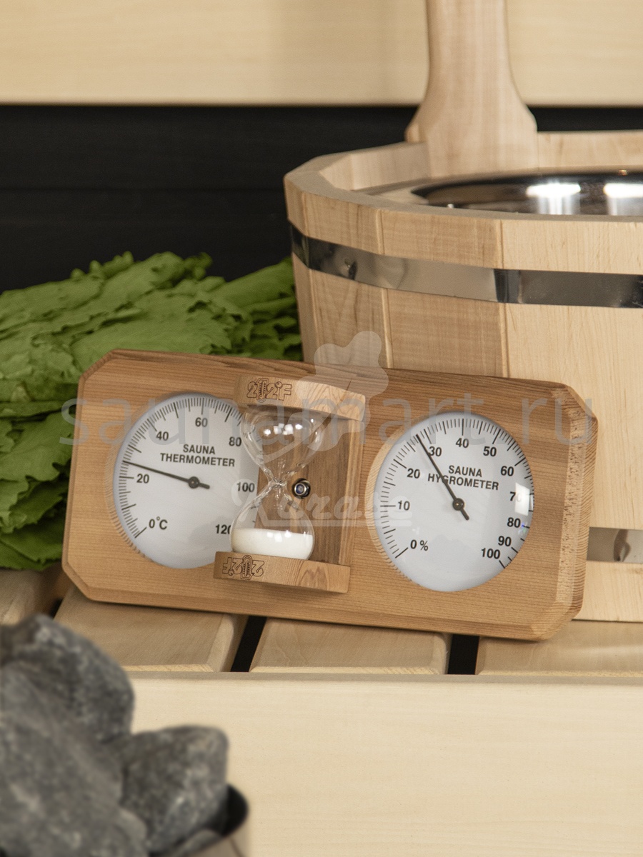 Термогигрометр с песочными часами идеально подойдет для использования в банях и саунах.