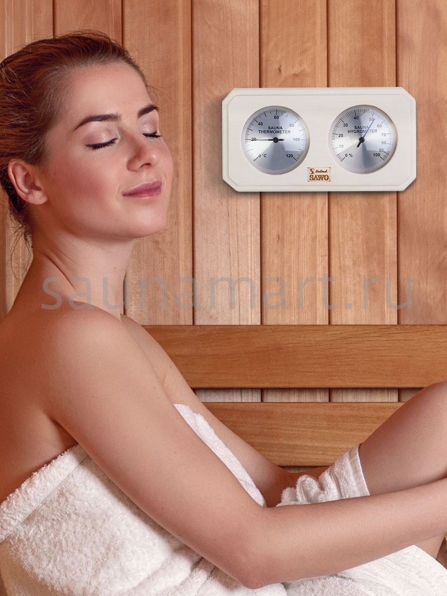 Термогигрометр SAWO удачно дополнит интерьер любой бани или сауны, красиво вписавшись в него.