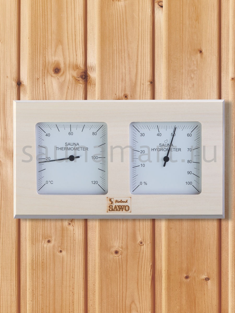 Термогигрометр SAWO 224-THA отличается надежностью, долговечностью и практичностью. Корпус прибора выполнен из осины, очень прочного материала, который не выделяет смолу и не впитывает влагу. В широкой раме из осины находятся два круглых циферблата под термостойким стеклом. Градуировка шкалы гигрометра варьируется в пределах от 0 до 100 %. Градуировка шкалы термометра варьируется в пределах от 0 до 120 градусов по Цельсию. Предусмотрена возможность калибровки прибора. Термогигрометр SAWO прекрасно впишется в интерьер любой бани или сауны и удачно дополнит интерьер. Термогигрометр Саво подойдет для использования в любом парильном помещении, как в условиях русской бани, финской сауны так и хамама. Помните, чтобы проведённое в парной время оказало благоприятный эффект на здоровье и самочувствие, необходимо тщательно соблюдать температурный режим парения и режим влажности.Высокий стандарт качества SAWO гарантирует надёжность и точность измерений термо-гигрометра.
